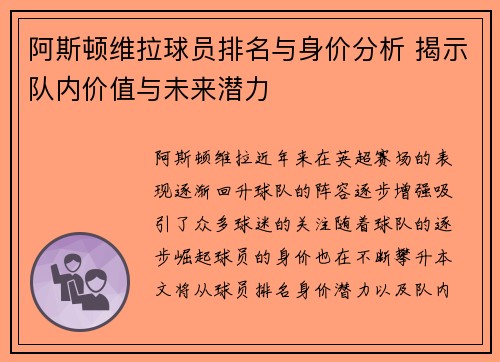 文章摘要:本文将详细回顾阿斯顿维拉在某场比赛中的半场表现,重点分析全场焦点及关键时刻。通过回顾比赛中的几个关键时段,我们可以从多个角度深入探讨阿斯顿维拉的表现,包括进攻效率、防守站位、球员个体表现及教练战术部署。文章将从四个方面进行细致分析:首先是球队整体的进攻节奏与战术安排;其次是防守端的关键时刻...